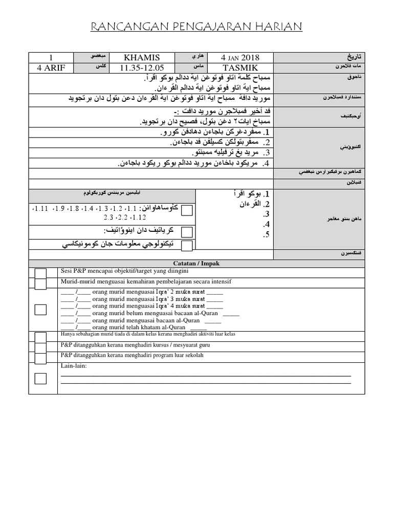 RANCANGAN PENGAJARAN HARIAN PENDIDIKAN ISLAM Nama guru. Penyusunan sub topik daripada mudah ke sukar membolehkan murid menguasai pengetahuan dan kemahiran yang disampaikan dengan mudah dan jelas. Terkini melalui program Transformasi Sekolah 2025.